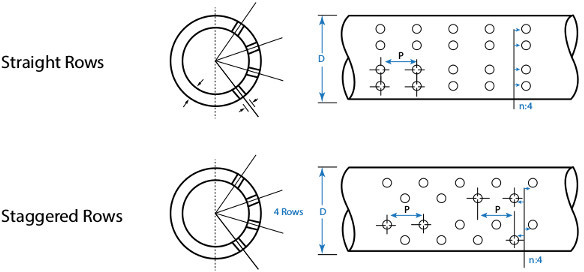 Angular Pitch of Holes40 degree for 3 or 4 rows
